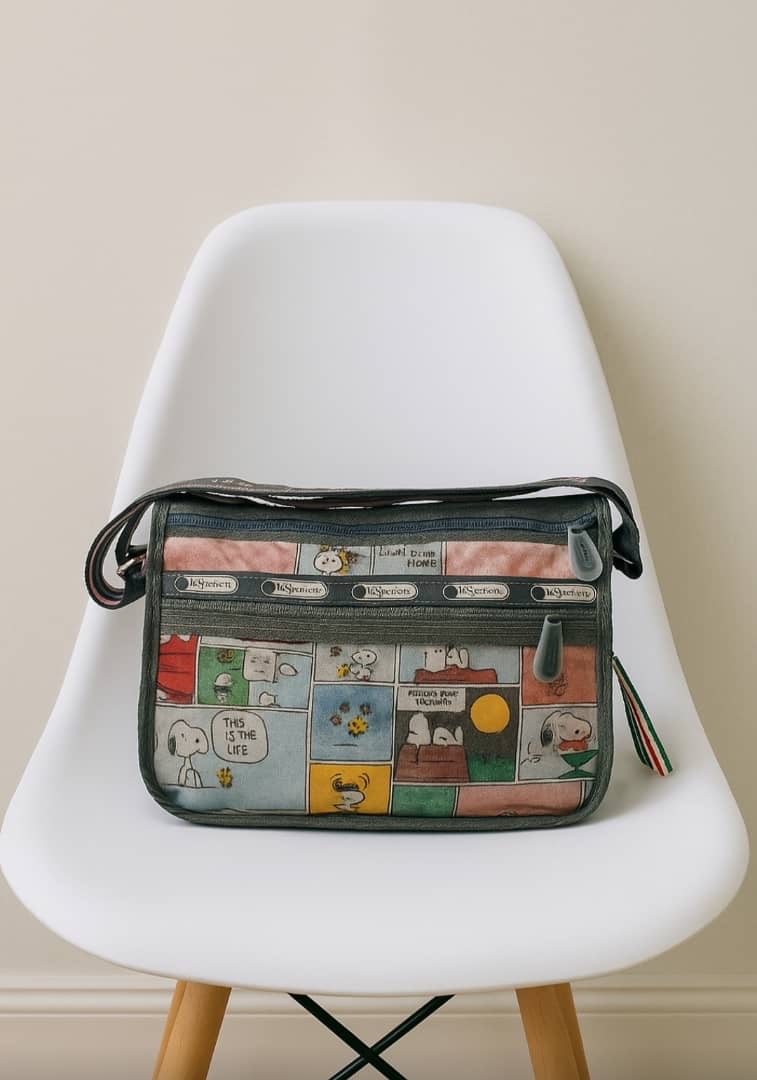 جنس پارچه ضخیم ضد آب بند دوشی طرح دار و پهن بند قابل تنظیم دارای زیپ در کنار و زیر کیف برای بزرگتر شدن حجم قابل شستشو دارای کیف جانبی